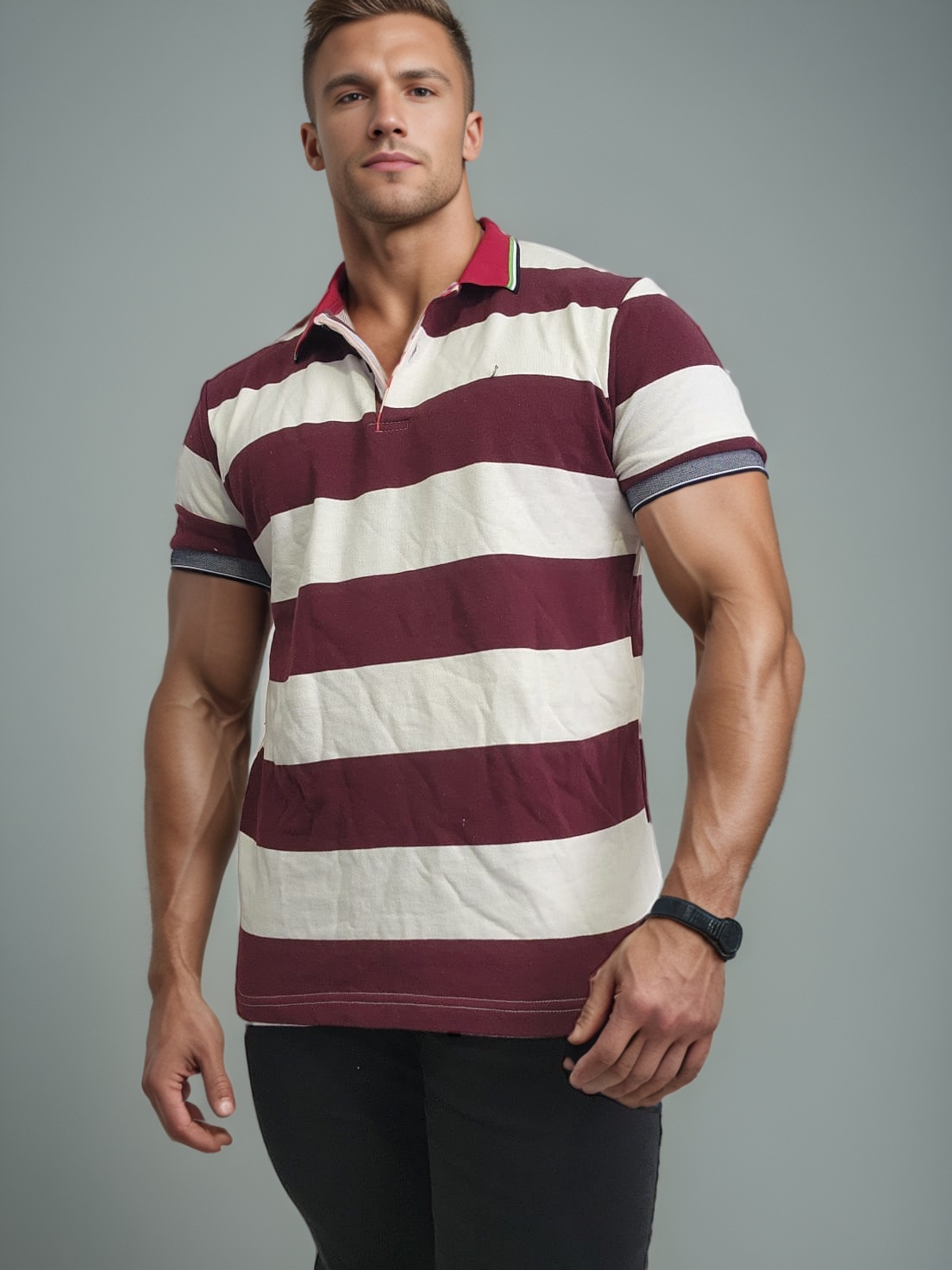 Camiseta Con Cuello- Modo Clásico Rayas Concho de Vino
