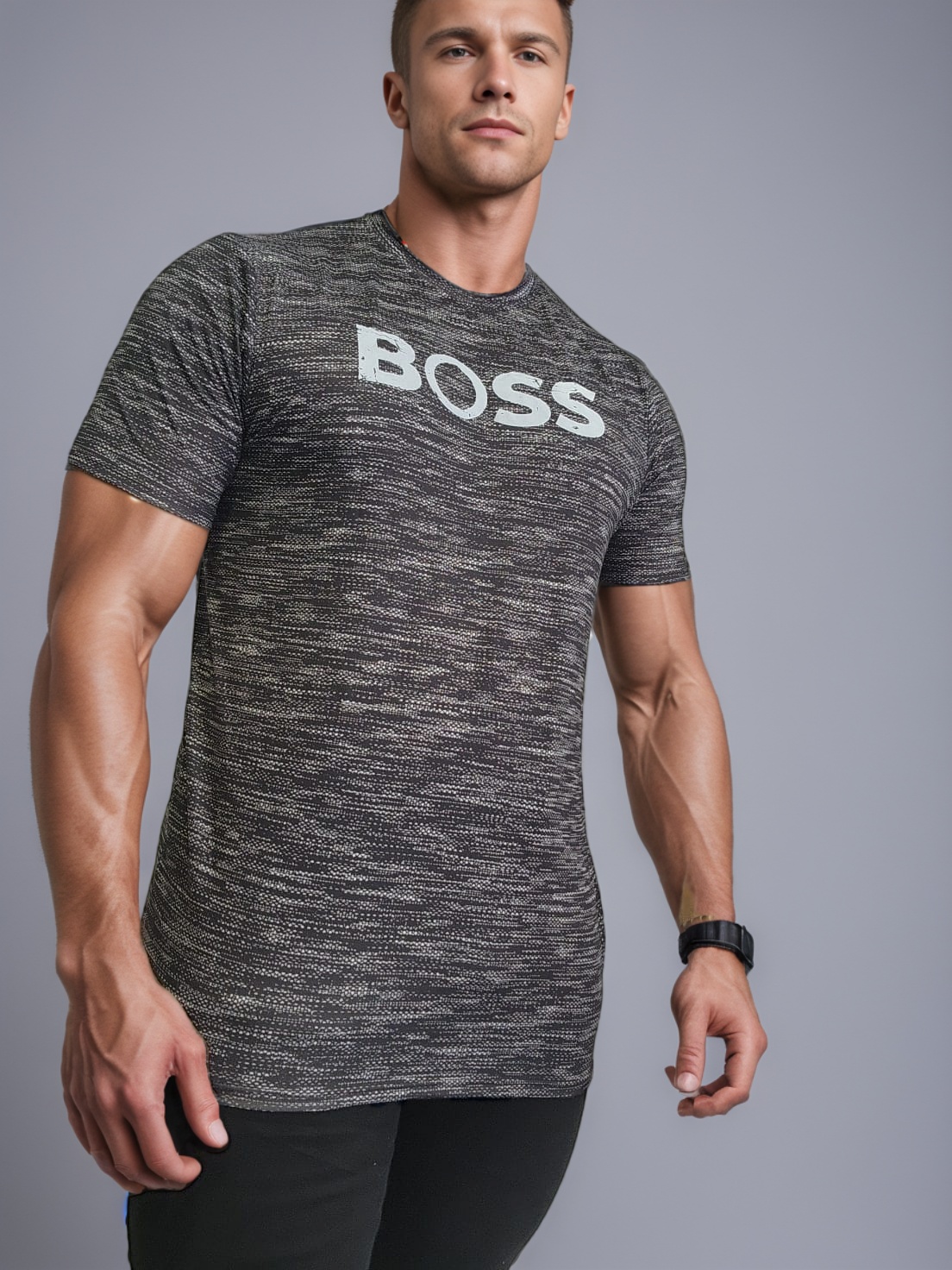 camiseta estilo básico premium- Boss Gris Jaspeada